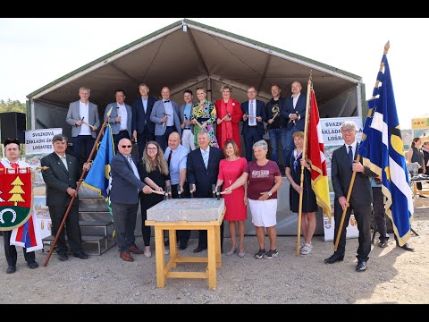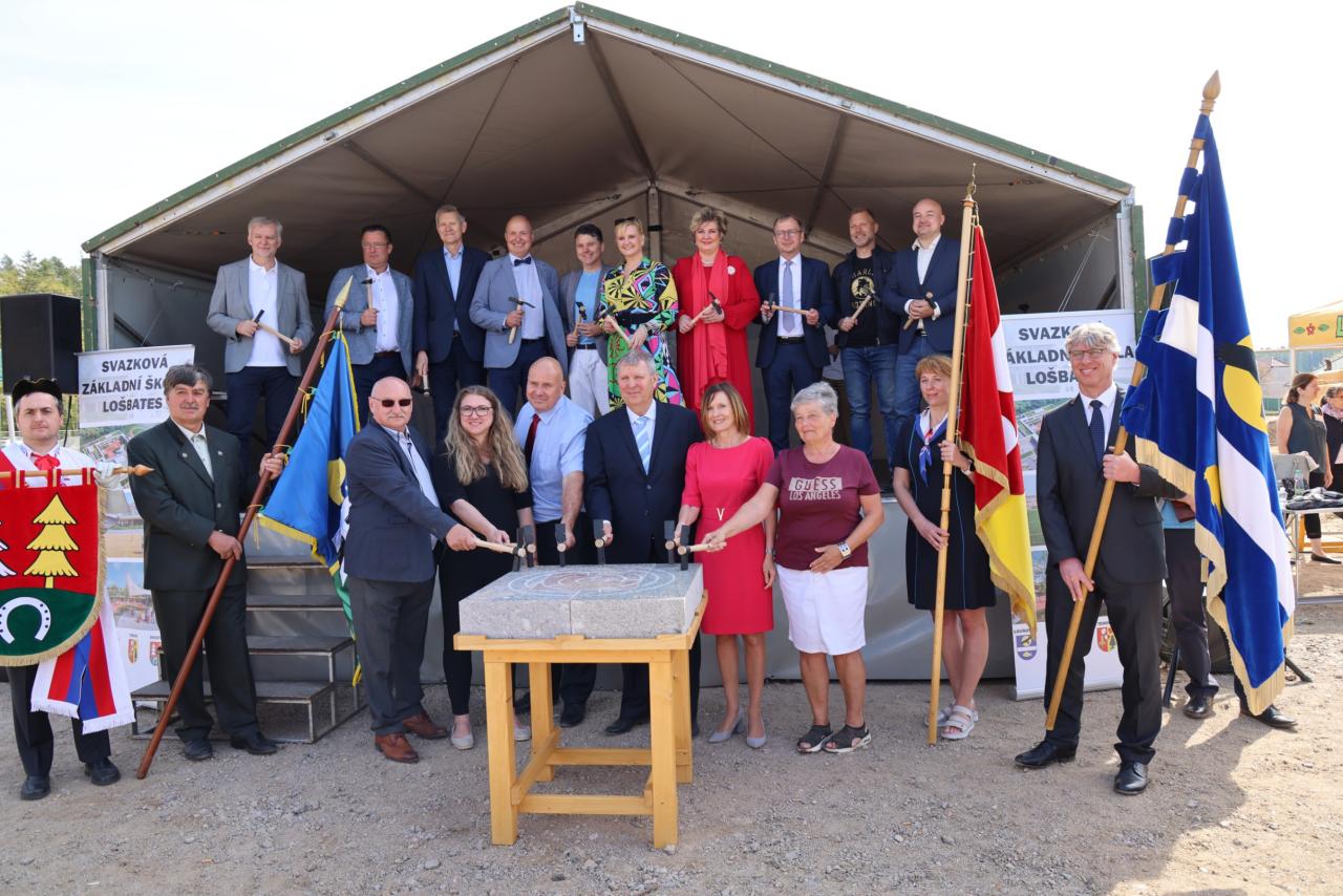 Základní kámen školy, na který slavnostně poklepali starostové i řada čestných hostů, má symbolický význam. Každá obec svazku LOŠBATES – Louňovice, Štíhlice, Tehovec, Svojetice – dodala jednu jeho čtvrtinu vždy v barvě žuly, která se na území dané obce vyskytuje. Jednotlivé čtvrtiny do sebe přesně zapadají a zároveň jsou spojené labyrintem ve tvaru spirály, inspirovaným dílem Jana Amose Komenského Labyrint světa a ráj srdce.